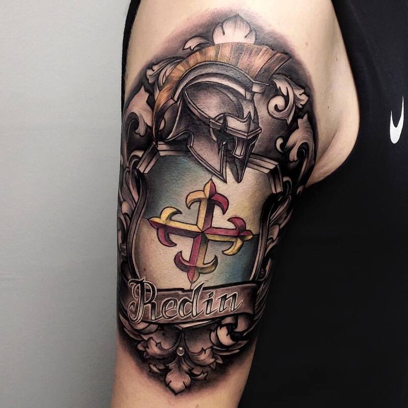 SHIELD TATTOOS SHOULDER PLACEMENT