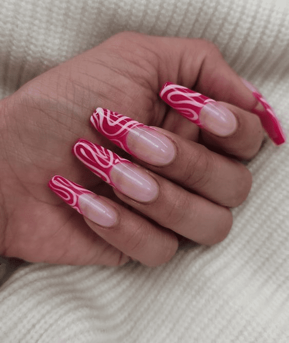 Dive into a mesmerizing underwater world with oceanic swirl nails. Begin with a base coat in a cool ocean blue or deep teal. Then, unleash your creativity! Use a fine nail art brush and various shades of blue, green, and white to create swirling patterns reminiscent of ocean currents. Don’t be afraid to experiment with different strokes and techniques for a truly unique effect. For an extra touch of realism, add a dash of silver glitter polish to mimic sparkling sunlight filtering through the water. Finish with a glossy top coat to enhance the vibrancy of your oceanic swirls and create a captivating underwater masterpiece on your fingertips.