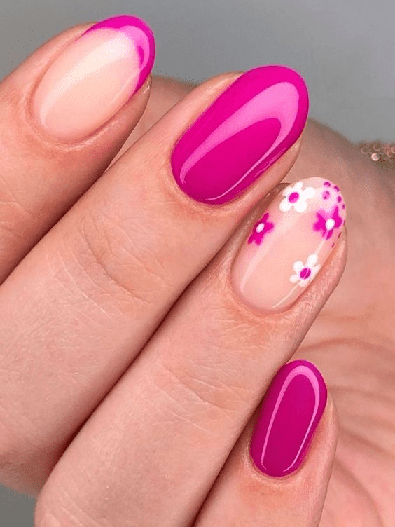 Sunset Hibiscus French is a beautiful and trendy nail design that combines the elegance of a French manicure with the vibrant colors of a sunset. The tips of the nails are adorned with shades of orange, pink, and red, reminiscent of a stunning evening sky. This nail art often features delicate hibiscus flower accents, adding a touch of tropical flair. It’s a popular choice for those looking to bring a bit of summer warmth to their look year-round. Whether for a beach vacation or simply to brighten up a regular day, Sunset Hibiscus French nails are sure to make a stylish statement.