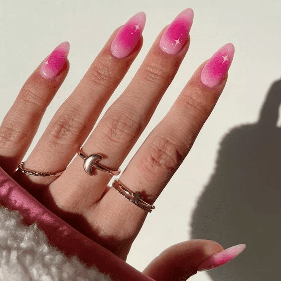 Airbrushed Sunset French nails are a stunning twist on the classic French manicure, featuring a gradient of warm, sunset-inspired colors. The seamless blend of orange, pink, and purple hues creates a beautiful ombre effect that mimics the beauty of a setting sun. This design often includes subtle shimmer or glitter to enhance the overall look, giving the nails a radiant glow. The airbrushing technique used in this design ensures a smooth and flawless finish, making it a popular choice for those seeking a chic and eye-catching style. Airbrushed Sunset French nails are perfect for summer outings and special occasions, adding a touch of elegance and vibrancy to any ensemble.