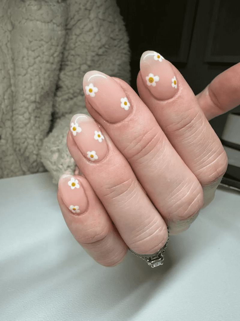 Delicate floral nails are like tiny works of art for your fingertips. They feature pretty flowers painted with soft colors and thin lines. Imagine little bouquets blooming on your nails! This sweet and stylish look is perfect for anyone who loves flowers and a touch of elegance.
