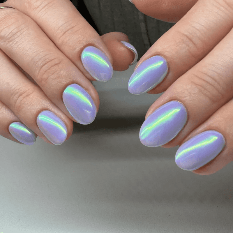 Baby-blue chrome nails are the perfect blend of sweet and sassy for summer. Imagine a soft, ethereal baby blue base transformed with a dazzling chrome finish. The chrome effect adds a touch of high-fashion edge, while the baby blue keeps it light and airy, perfect for the warm summer months. This unexpected combination creates a manicure that’s both eye-catching and surprisingly versatile. It can dress up a casual outfit or add a touch of whimsy to a more formal look.