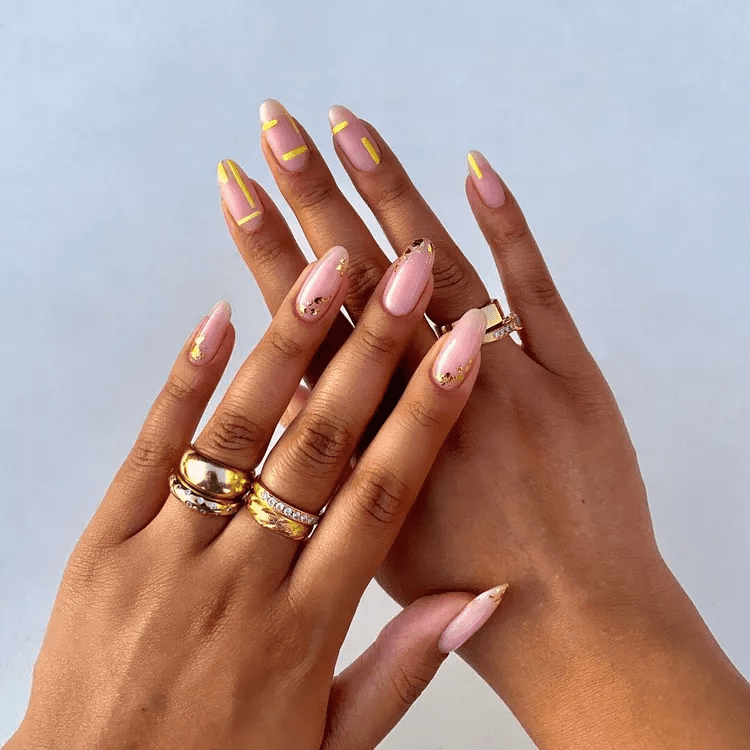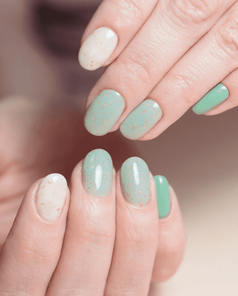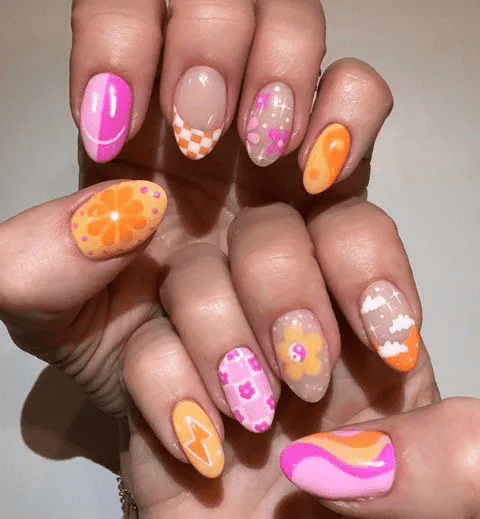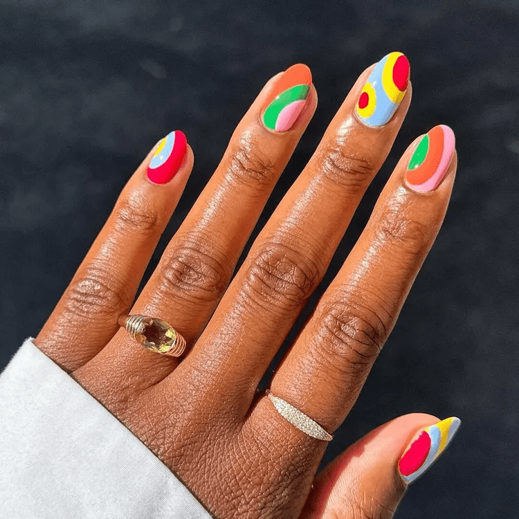 Mix & match nails are all about embracing individuality and having fun with color! Ditch the idea of uniformity and paint each finger a different shade. Play with a range of summery colors, textures like glitters or mattes, or even incorporate simple nail art designs for a truly unique look. This playful approach lets your personality shine through your fingertips, perfect for those who love to express themselves through bold and creative statements.