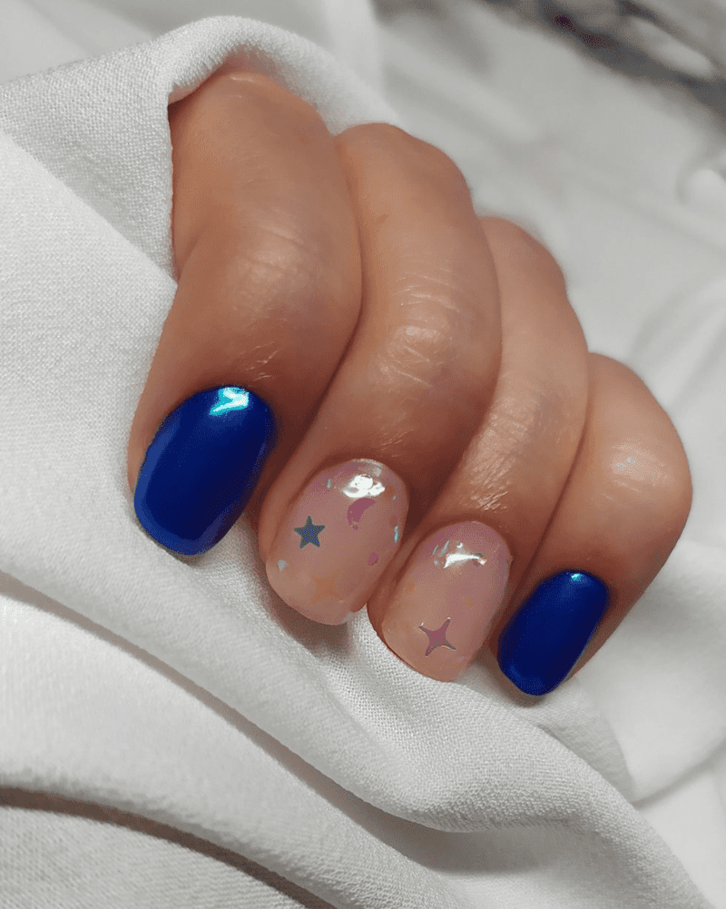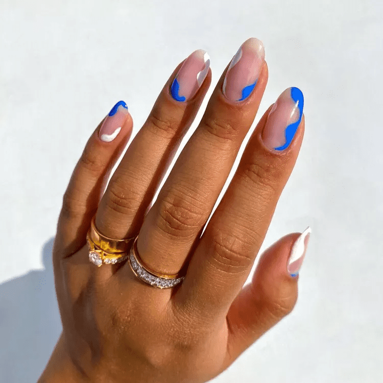 Channel the cool vibes of the ocean with blue wave nails! This mesmerizing design captures the movement and beauty of ocean waves right on your fingertips. Imagine a base coat of light blue or teal that fades to a deeper navy at the tips, creating a gradient effect. Then, delicate white lines are used to mimic whitecaps or crashing waves, adding a touch of realism and movement. Blue wave nails are a refreshing and unique way to celebrate summer and your love for the ocean.