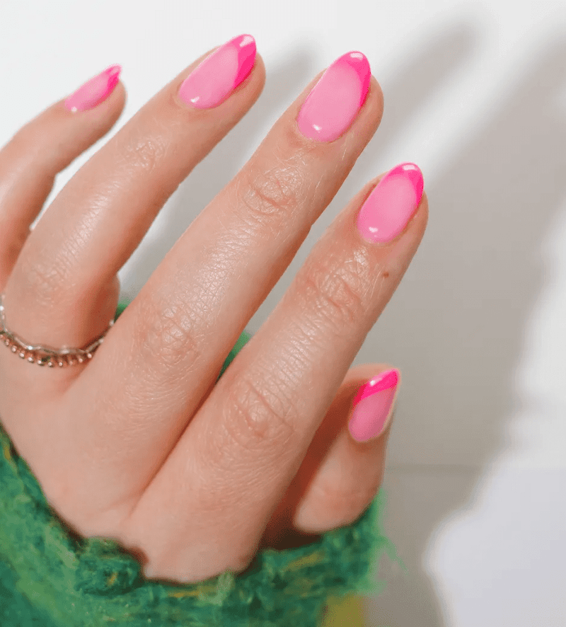 Two-tone neon nails are like a party for your fingertips! Instead of just one bright, neon color, you get two. Imagine mixing and matching different neon shades to create a bold and eye-catching look. This fun style is perfect for anyone who loves bright colors and wants their nails to stand out!