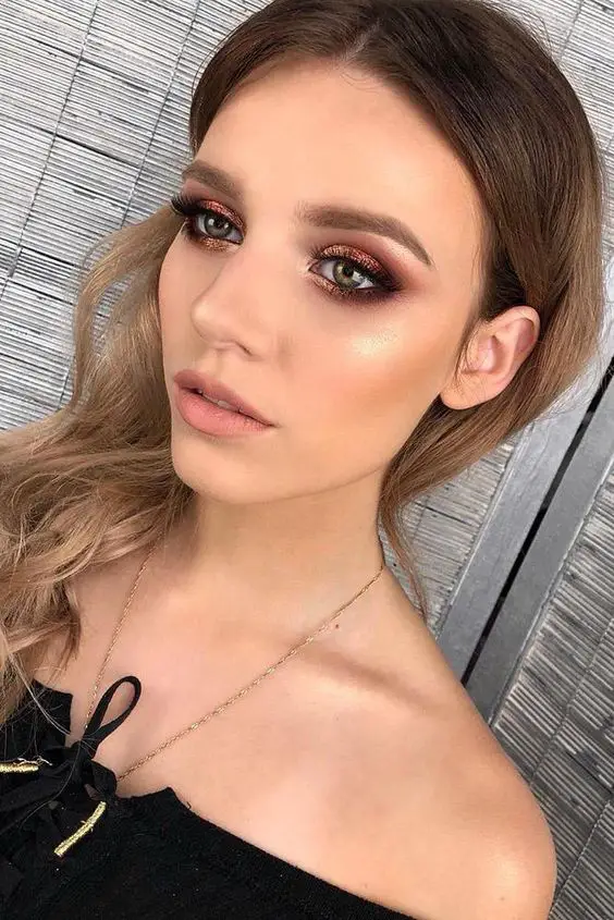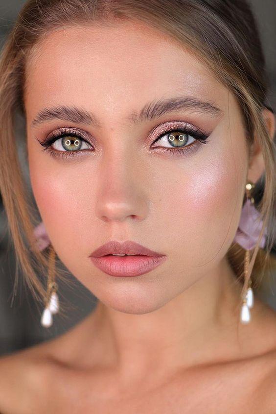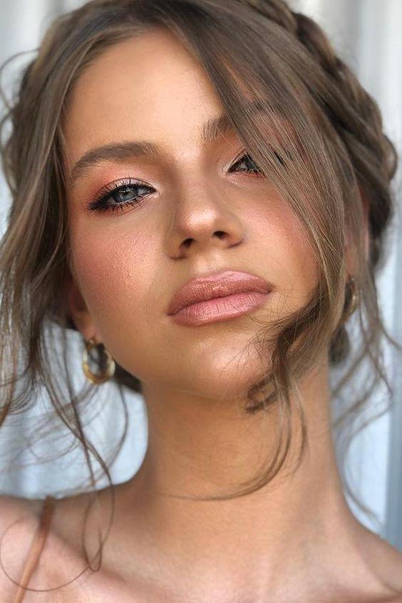 This look exudes a simple yet elegant evening charm, featuring a smoky eye enhanced with warm, earthy tones. It’s perfect for brides with brown hair and pale skin, as it complements natural skin undertones while highlighting eye color. Imagine an everyday eye style elevated to celebrate one of life’s most special moments.