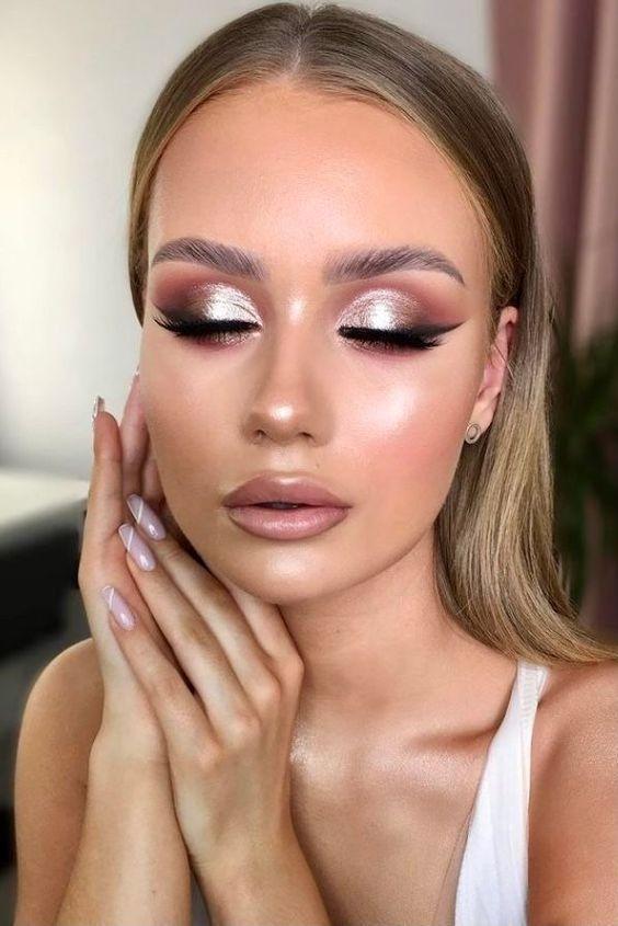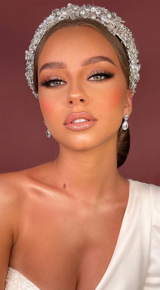 This smoky eye makeup takes on a formal flair with a bold yet subtle approach. It’s a timeless beauty for the bride who yearns for a touch of nostalgia, reminiscent of classic screen sirens. This style blends natural bridal elegance with a hint of cinematic romance.