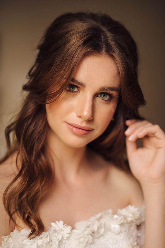 This look blends depth and dimension to create an alluring contour with brown shadows, enhancing hooded eyes. Ideal for the bride with brown hair who wants to infuse a touch of mystery into her natural beauty.