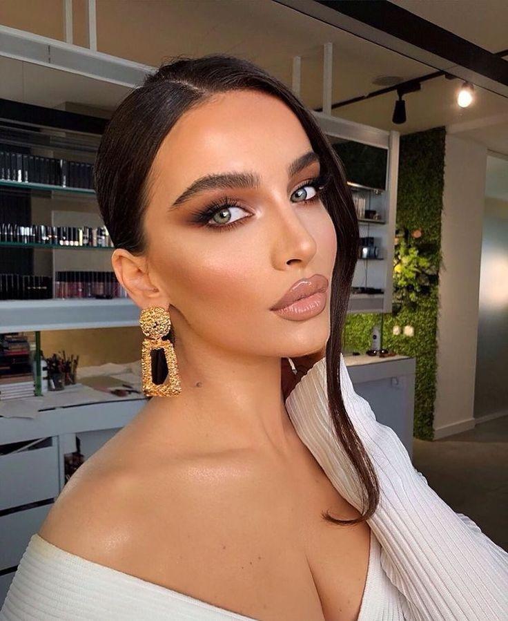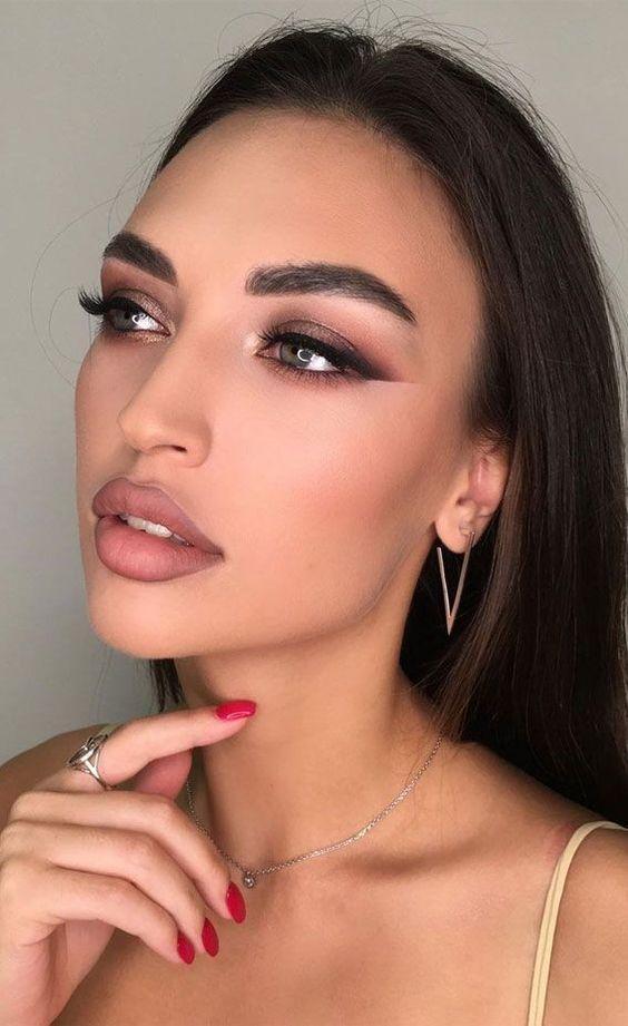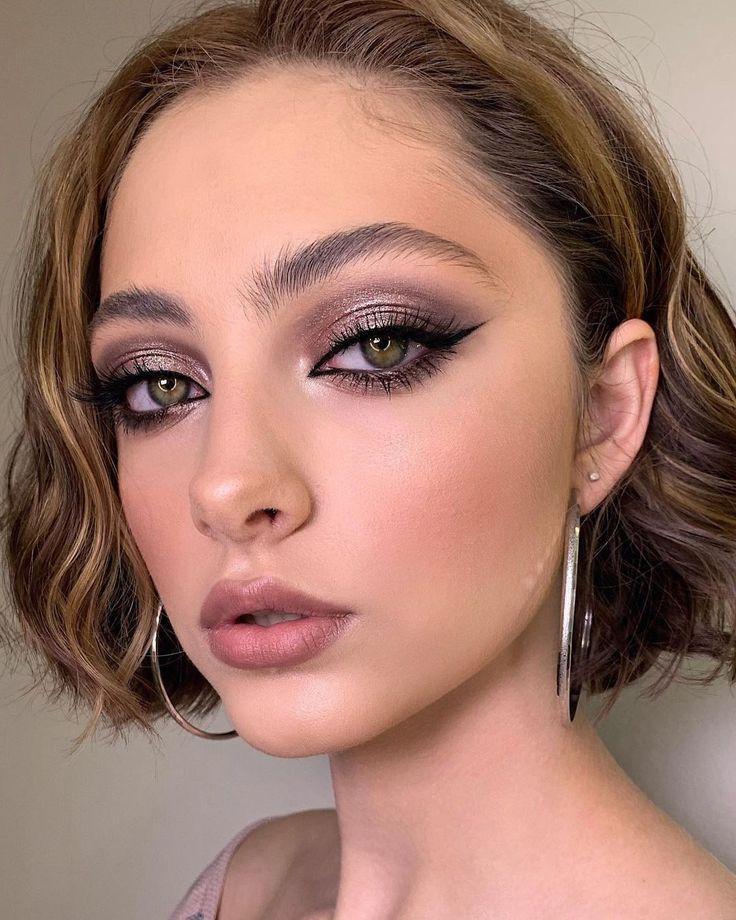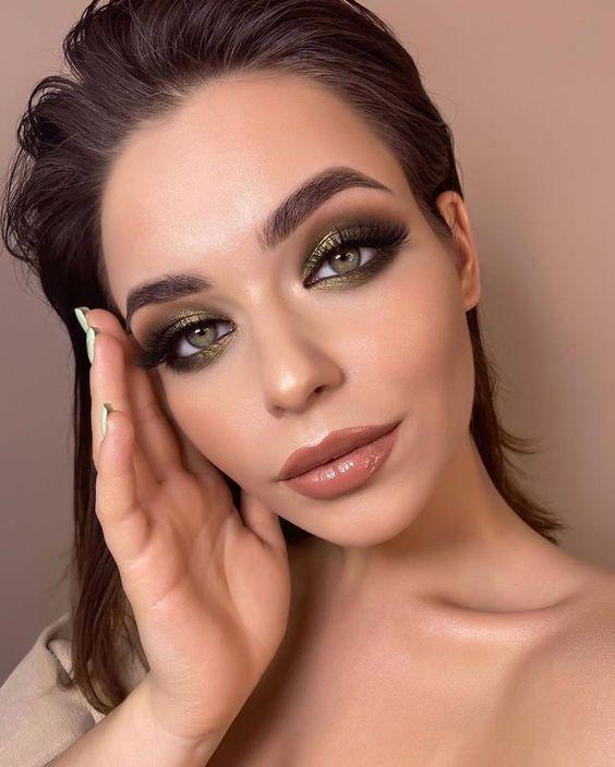 This makeup style pays homage to the smoky eye technique, offering a timeless look that adds seductive depth to green eyes. The dark eyeshadow gradient, extending into a wing, transforms the gaze into a bold statement of dramatic allure