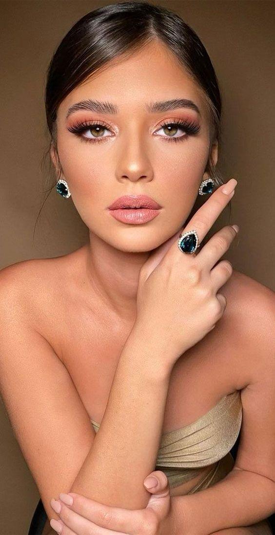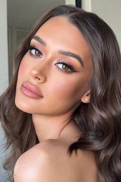 This look highlights bold lashes, framing the green eyes and giving them an open, captivating appearance. It’s ideal for a bride who loves a glowy prom style with a hint of drama. The dramatic lashes draw attention, adding an inviting depth that makes the eyes truly mesmerizing.