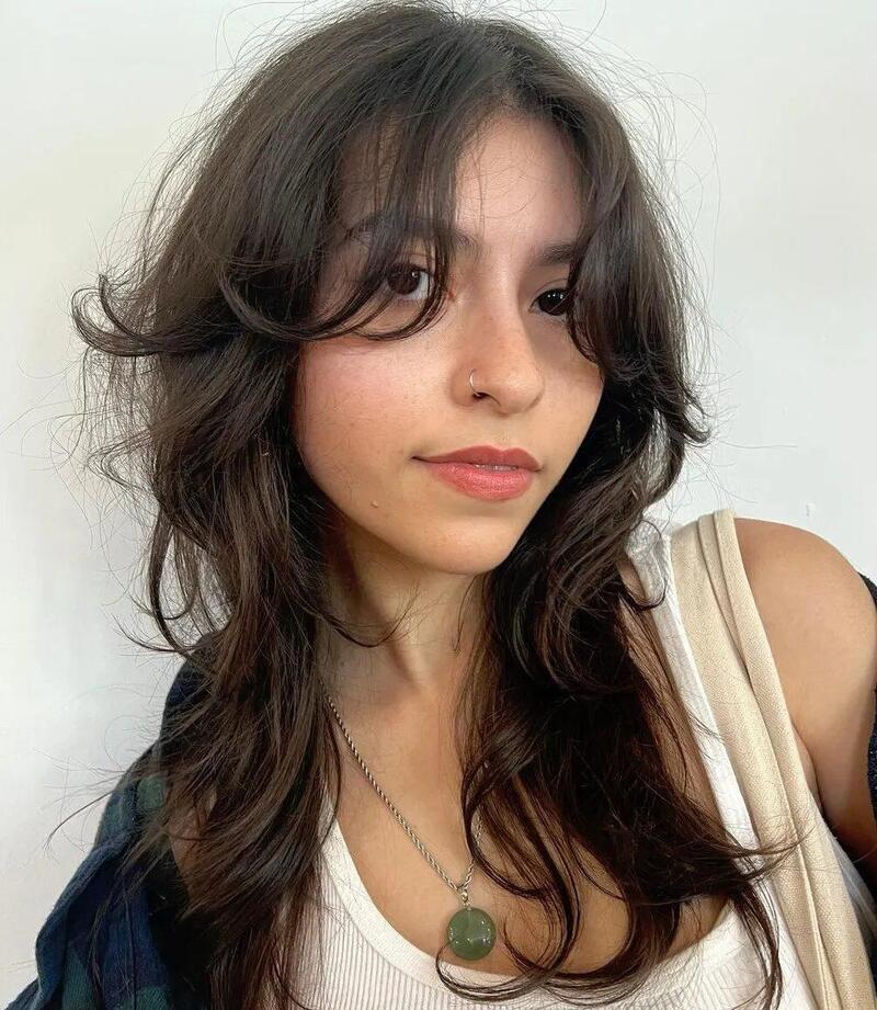 Add a touch of allure to your curly hairstyle by incorporating a fringe. Whether you let a few curls fall softly over your forehead or sweep a fuller set forward, a fringe can instantly create the look of more volume and bounce, enhancing your overall style.