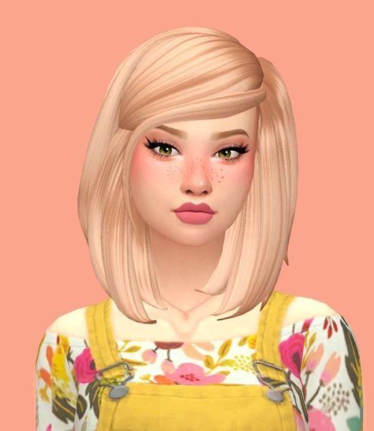 Created by Simstrouble, this hairstyle is a long bob with messy bangs. It also includes flower clip accessories and highlights, which are not shown here.