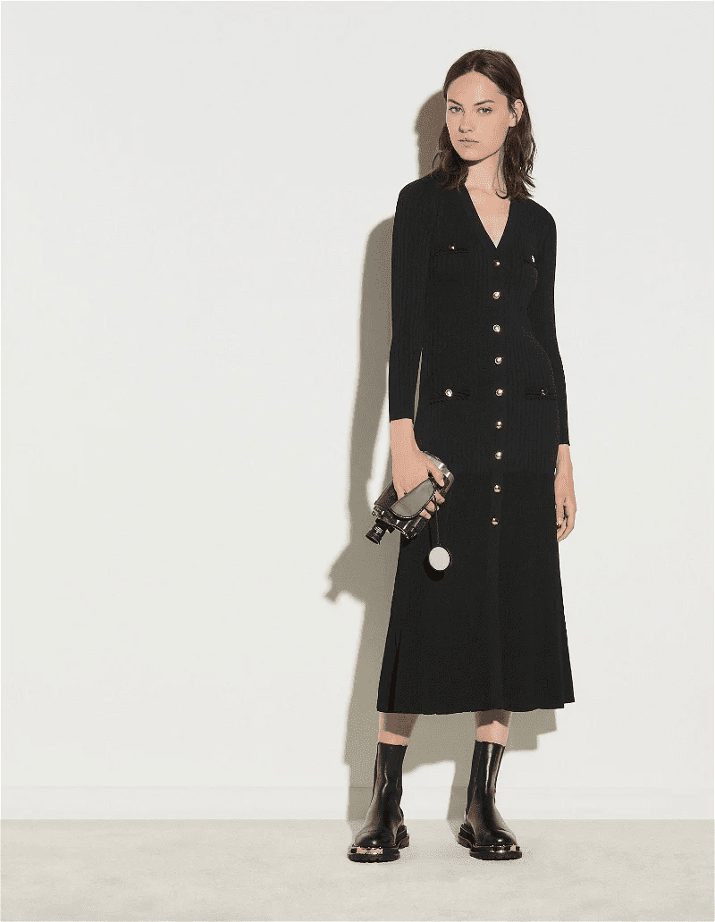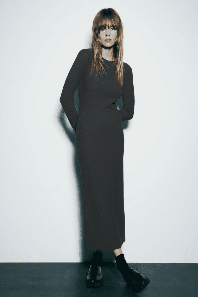 Imagine you’re wearing a mid-length knit dress that’s flowy and easy to wear. The soft knit ensures maximum comfort throughout the afternoon, while the length adds a touch of sophistication. Perhaps you prefer a more tailored shape? Zara offers bodysuit styles that hug your curves and flatter your figure. Whether you choose a round neck, a cozy turtleneck, or a trendy V-neck, Zara’s options cater to every taste. The top of the dress is like a fitted long sleeve shirt. For added visual interest, look out for dresses with ribbed prints, knit patterns, or button details – all elements that elevate your look from casual to chic. With Zara, you can experience the comfort of a knitted dress while remaining smart and stylish for your delightful afternoon tea.