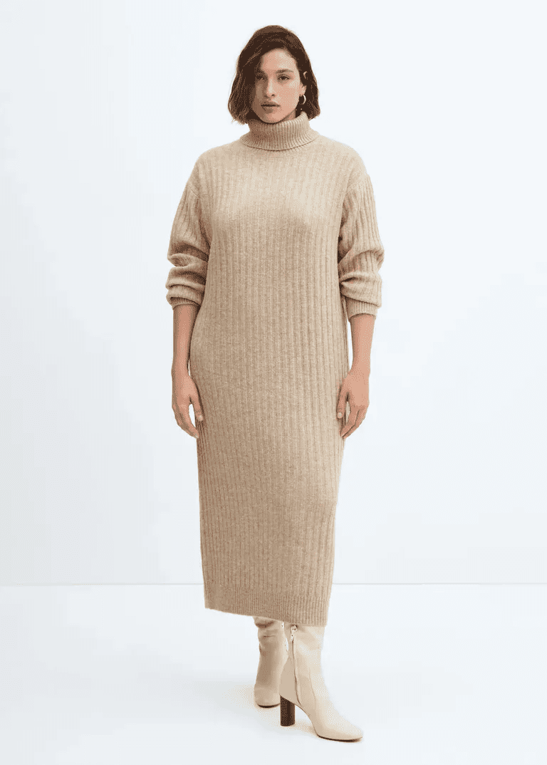 MANGO RIBBED TURTLENECK DRESS