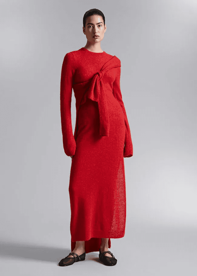 & Other Stories offers a variety of knitted maxi dresses, allowing you to choose the perfect one to match your style and the specific season. Whether you prefer a chunky knit for a cozy fall vibe or a lighter knit ideal for warmer afternoons, & Other Stories has you covered. Their maxi dresses come in a range of silhouettes, from slim-fitting and body-con for a chic look to looser and flowy for a more relaxed feel. You can find options with turtlenecks for added warmth or simple crewnecks for a casual touch. With & Other Stories’ commitment to quality and a variety of styles, you’re sure to find a knitted maxi dress that keeps you comfortable and feeling confident throughout your delightful afternoon tea.