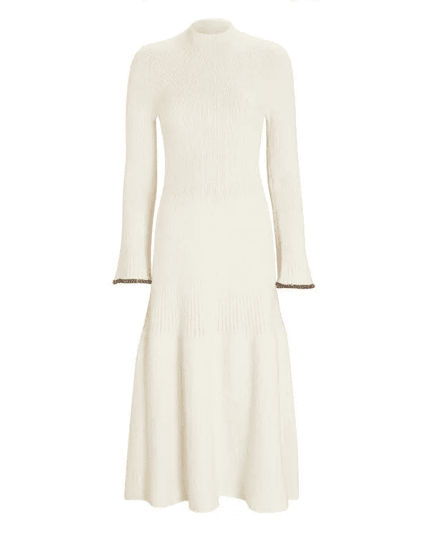 This designer piece is perfect for those who appreciate a modern take on a classic silhouette. The dress itself is likely crafted from a high-quality yarn with a unique textured knit that adds visual interest without being overly ostentatious. Proenza Schouler is known for its sharp tailoring, so expect a clean and flattering fit that drapes elegantly on the body. While details about this specific dress might be limited, you can expect a long-sleeve design ideal for the cooler fall weather and a midi or maxi length that feels sophisticated for an afternoon tea setting. This Proenza Schouler dress is sure to turn heads with its subtle yet undeniable designer flair.