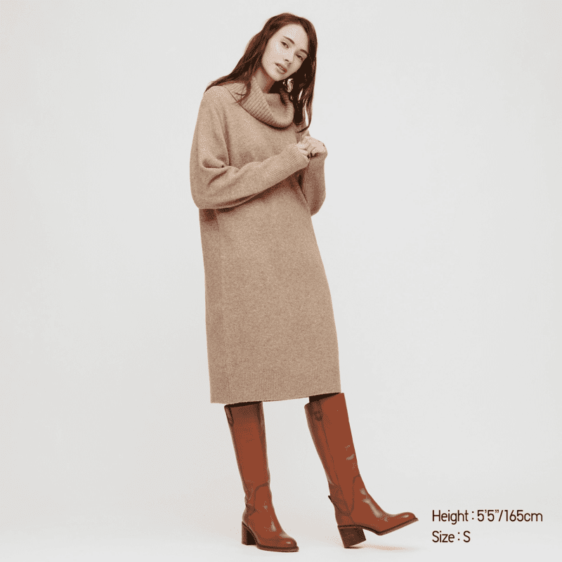 UNIQLO WOMEN’S SOUFFLE YARN TURTLENECK LONG-SLEEVE DRESS