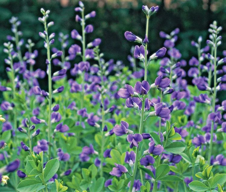 Once established, Baptisia, commonly known as false indigo, can thrive for decades. In fact, several specimens in the Better Homes & Gardens Test Garden® have reliably bloomed every spring since their planting in the 1950s. This robust, shrub-like perennial produces elegant stalks adorned with blue, white, purple, or yellow flowers, which are followed by distinctive seedpods filled with seeds. Baptisia also boasts attractive blue-green, pea-like foliage that remains visually appealing even when the plants are not in bloom, making it a fantastic addition to any garden.