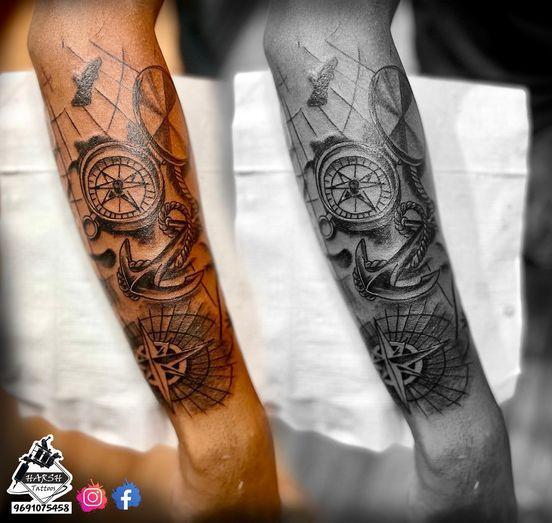 COMPASS HALF SLEEVE TATTOO
