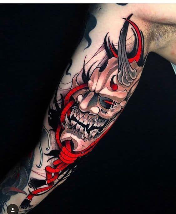 KOREAN DEMON MASK HALF SLEEVE TATTOO