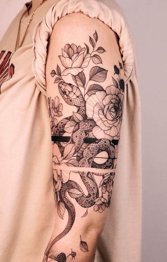 FLORAL SNAKE HALF SLEEVE TATTOO