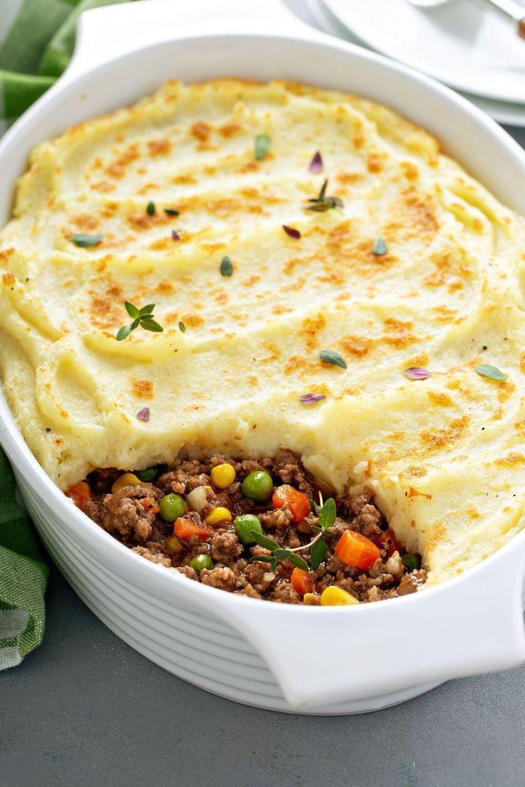 - Layer the ground turkey and vegetable mixture in the greased casserole dish, then spread the mashed cauliflower and potato topping evenly over the top with a spatula.