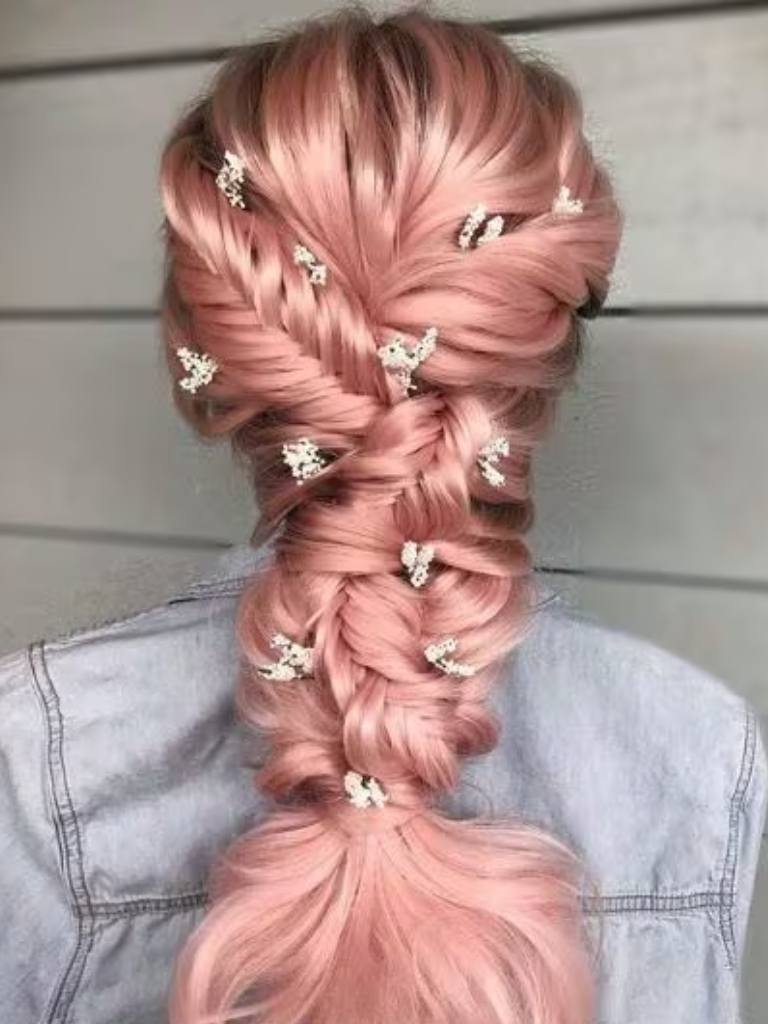 If a classic fishtail plait isn’t enough for you, why not showcase your braiding skills with multiple intricately woven variations? With its pastel hues and delicate flower accessories, this braided style is a perfect addition to your festival hair lineup!