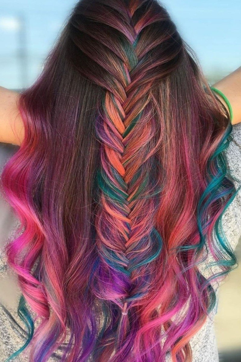Make a bold statement with mixed-color fishtail braids! Combine vibrant shades for a fun and eye-catching hairstyle that truly stands out.
