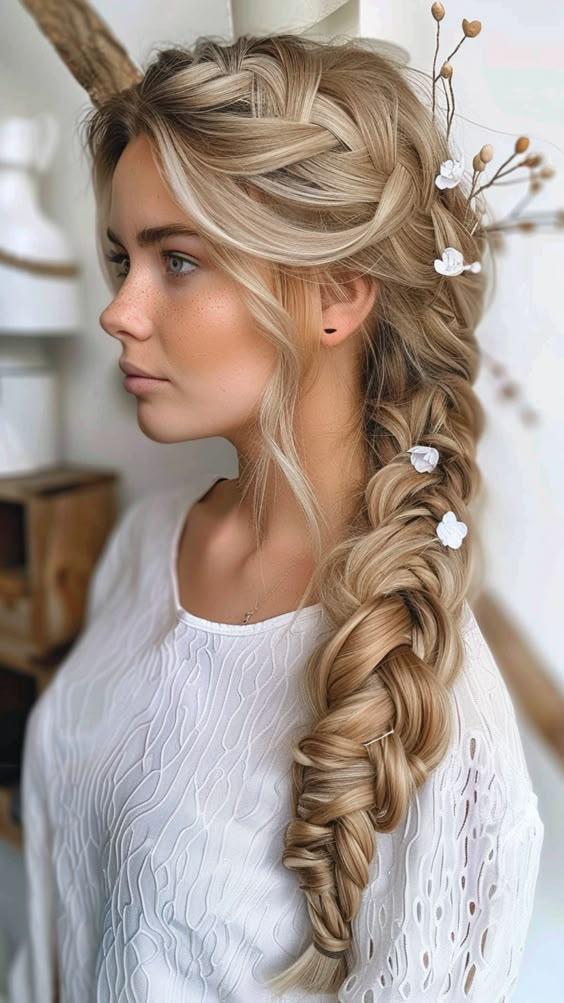 A side fishtail braid can be styled as either a Dutch or French fishtail braid on one side of the head. This versatile look is perfect for both casual outings and formal events.