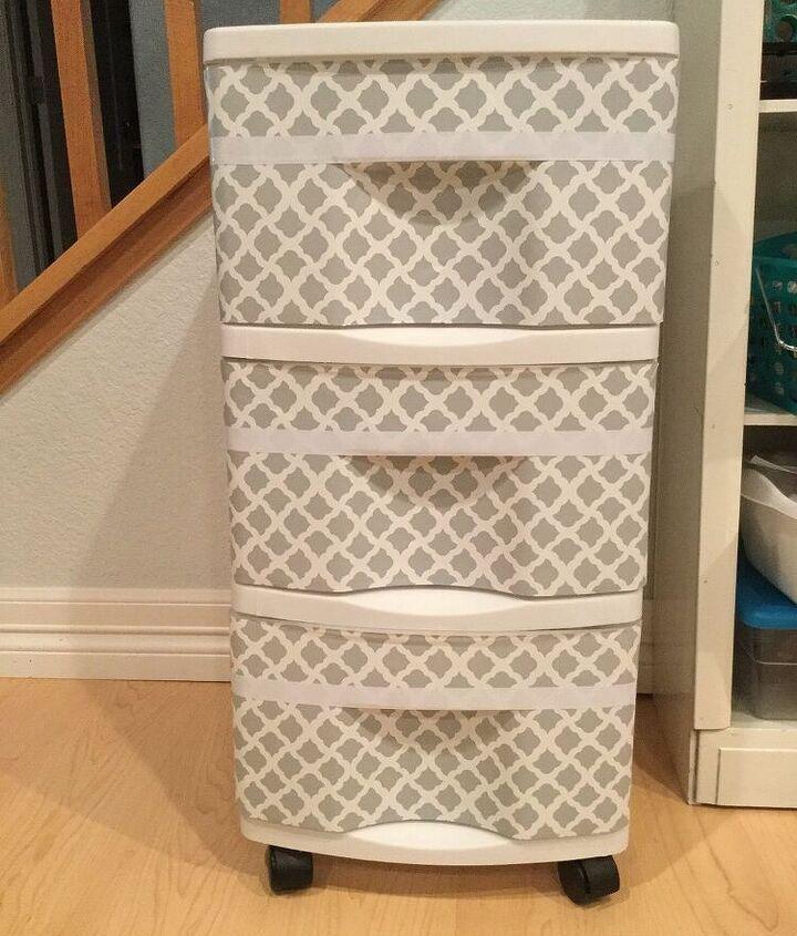 I have several 3-drawer storage containers around our home. Sometimes I appreciate being able to see what’s inside, but other times I’d prefer it hidden. So, I found an easy and budget-friendly way to upcycle these drawers, concealing their contents while giving them a stylish refresh.